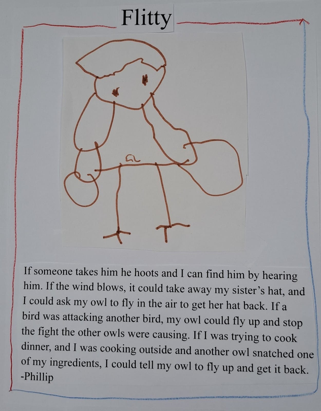 In mid-March, I was walking with Emilia past the Special Critter Friend poster. She remarks, “ I wish Lyci (her chameleon Special Critter Friend) was real.” This was not the first time I was struck by how compelling the idea of having a unique animal friend was to the Dragonflies. I remembered that several Blue Otters had asked me if they could have a Special Critter Friend. I thought, there is something to this project.