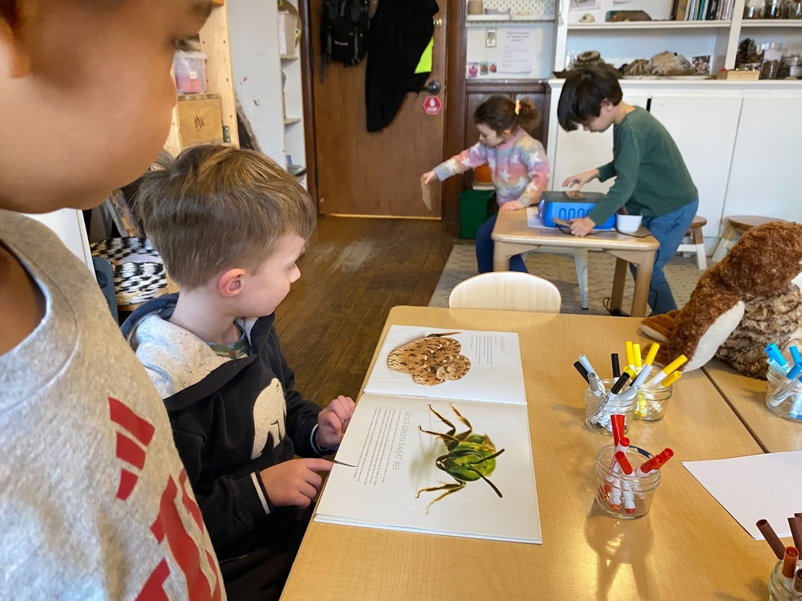 Since January, Wole and his four-and five-year-old Green Dragonfly classmates have each selected an animal that complements them to be their Special Critter Friend. In starting this project I had in mind the daemons from Phillip Pullman’s Dark Materials trilogy. Each person in Pullman’s novels has a deep bond with their daemon, intelligent animals with unique personalities. A new endeavor, I hoped that the idea of having a special animal would connect with the Dragonflies and hypothesized that a bond with a specific animal could be a pathway to greater solidarity with the rest of nature. This essay chronicles the start of the project and considers next steps now that bonds between the children and their animals have been established.